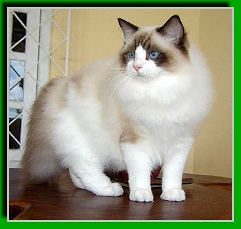 Die Ragdoll entstand erst in den 1960er Jahren aus einer weißen Langhaarkatze und einem BirmakaterDie Ragdoll gehört eindeutig zu den großen Katzen, Sie ist lang, mit mittelschwerem Knochenbau und muskulös. Ihr Kopf ist mittelgroß, ebenso wie die Ohren, die gerundete Spitzen haben sollen. Die Augen sind groß und oval und auf jeden Fall blau. Der Schwanz ist lang und am Ansatz mittelstark, er verjüngt sich zum Schwanzende hin etwas. Was die Ragdoll auszeichnet, ist sicherlich besonderes Wesen, daß ihr auch den Namen eingebracht hat. Ragdoll heißt übersetzt Stoffpuppe oder Schlenkerpuppe. Und so verhält sie sich auch, wenn man sie auf den Arm nimmt: Sehr entspannt und widerstandslos läßt sie sich vieles gefallen. Durch dieses ruhige, friedliche Wesen ist sie natürlich als Hauskatze sehr gut geeignet. |