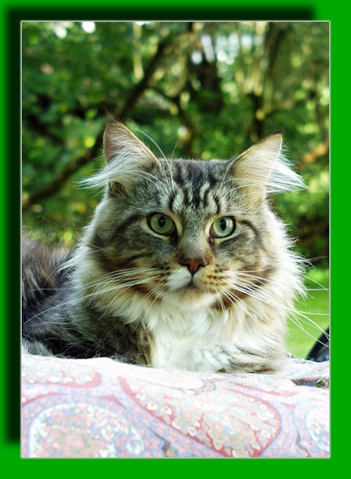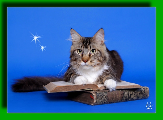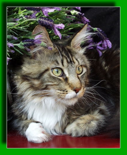 Vater/Sire: Enchantacoon Big Bad Bart (blacktabbyblotched/white) Mutter/Dam: CH Grantwood Casi Cielo (blacktorbieclassic/white)